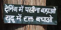 The camp of the battalion has motivational and soldierly phrases all over it to inspire the soldiers to become the best. Some of them are below