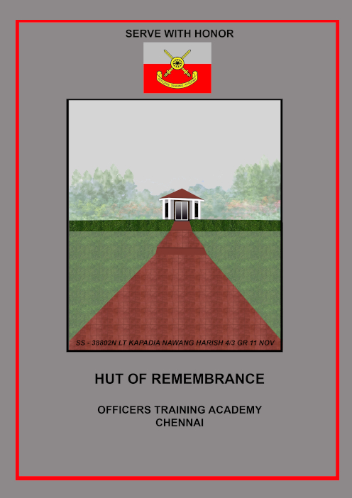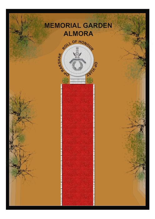 The graphic is dedicated to the Memorial garden at Almora, Uttarkhand. It depicts a top view of the garden with Gorkha soldiers in-formation during a memorial service.